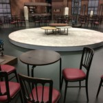 Dort probten wir keine neuen Lieder, sondern es wurde uns erklärt und gezeigt, wie meist nur aus leichtem Styropor und viel Farbe ganze Dekorations- und Bühnenkulissen angefertigt wurden. Die täuschend echt aussehenden Endergebnisse erwecken im Zuschauer den Eindruck, es handele sich um ,,echte“ Bauwerke aus Stein, Marmor, Holz oder Metall, oder befände sich gar an Originalschauplätzen. In riesigen Hallen werden von Handwerkern (die auch dort ausgebildet werden können), wie z.B. Schreinern, Stuckateuren und Bühnenbildnern ganze Häuserwände erstellt oder Studios gestaltet, in den Talkshows und andere Sendungen des WDR teilweise live gedreht, meist jedoch aufgezeichnet werden. So waren wir alle sehr beeindruckt von den riesigen Studios und deren Gestaltung, die für den ,,Kölner Treff“ oder die Sendung von Eckard von Hirschhausen gebraucht wurden.