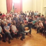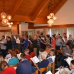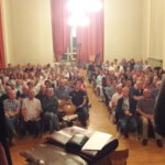 130 Stimmen waren bei den beiden Probentagen zusammengekommen, und haben unter der Leitung beider Chorleiter, Hartwig Diehl und Jörg Segtrop, einen Eindruck davon erhalten dürfen, was die Zuhörer nächste Woche bei der Aufführung erwartet. Gewaltiges Klangvolumen und ganz leise Töne lassen die Vorfreude auf das große Chor- und Orchesterwerk steigen. Alle Teilnahmer waren trotz anstrengender Probenarbeit erfreut, denn das Ergebnis des langen Einstudierens konnte sich hören lassen. Alle waren erstaunt und erfreut darüber, wie gut und schnell eine so große Sängerschar zusammenwächst als ein riesiger Chor und das nicht zuletzt dank der exellenten Arbeit beider Chorleiter, denen jetzt schon unser absoluter Respekt und unser Lob gilt. Sicherlich eine Mammutaufgabe, ein solches Werk einzuüben und zu Gehör zu bringen! Wir wünschen uns alle, dass wir mit dieser ergreifenden Musik unser Publikum berühren und zum ,,Friedenstiften“ anregen.