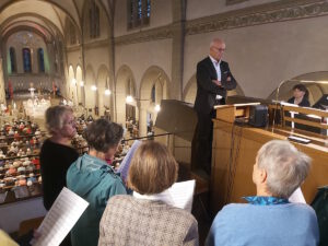 Danke an Hartwig Diehl, der uns nach einem Dreivierteljahr wieder einmal als Dirigent zur Verfügung stand. In 2024 hatte er den Magdrigalchor für ein Jahr geleitet, bis Jörg Segtrop Anfang 2025 nach seinem Sabbatjahr wieder den Chor übernahm. Schön, dass man sich kennt und sofort wieder aufeinander einstellt.