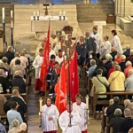 Der Organist Wolfgang Bitter ließ feierliche Orgelmusik zum Einzug erklingen und anschließend sangen 70 Chorstimmen von der Orgelbühne noch vor der Eröffnung der Messe ,,Herr, sei gnädig“ von Felix Mendelssohn-Bartholdy.