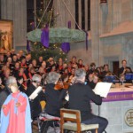 318 Zuhörer füllten die Bänke des Kirchenraumes  und durften nach den Begrüßungworten von Propst Michael Feldmann mit ,,Jauchzen und frohlocken“ musikalisch in die Weihnacht eingestimmt werden. Das nunmehr zum siebten Mal in der Propsteikirche aufgeführte Weihnachtsoratorium von Bach (Kantaten 1-3) ist nicht nur für die anwesenden Zuhörer, sondern auch für alle Beteiligten eine liebgewonne Tradition geworden.